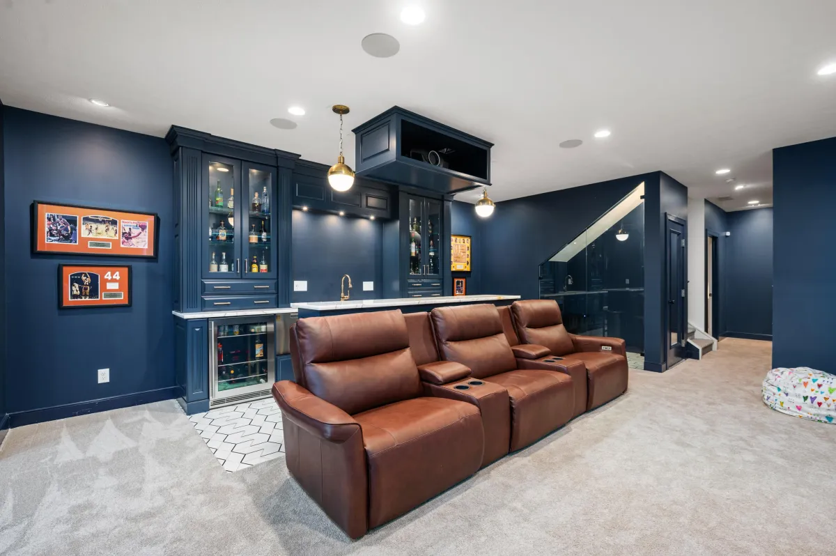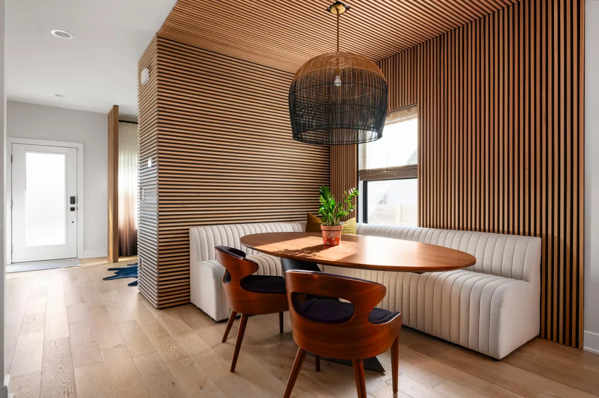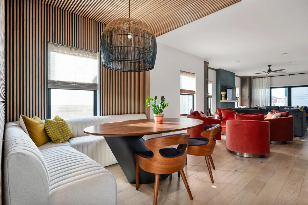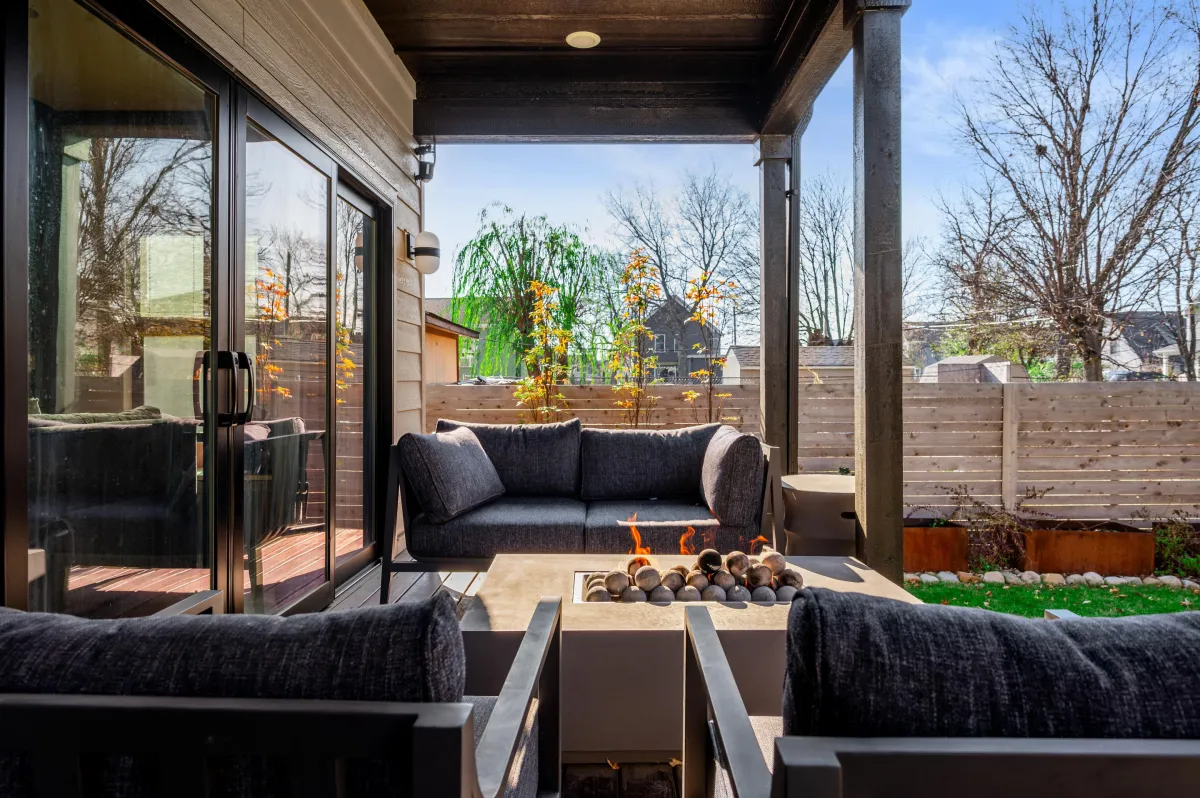 Indy Luxe is the ideal sanctuary for families and professionals alike, especially those in transition seeking relaxation and comfort. Culinary enthusiasts will find themselves at home in our fully equipped chef's kitchen. The rest of the main floor is covered in custom millwork from the slatwall adorning the sitting and dining area to the built-ins around the fire. Every inch of the home is optimized with no wasted space. In addition, it has luxurious indoor amenities such as a home theater, custom bar for movie nights and a workout room to keep active and engaged.